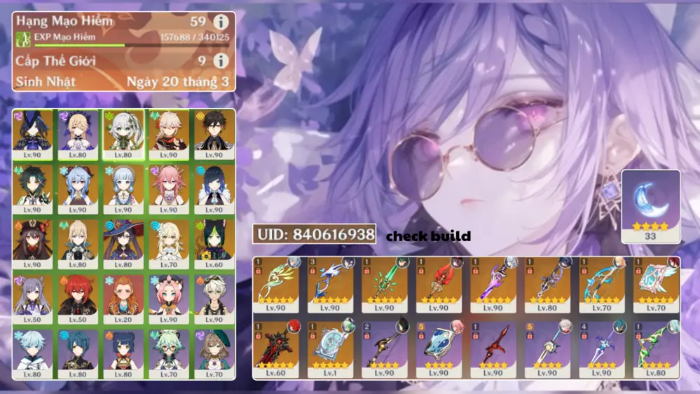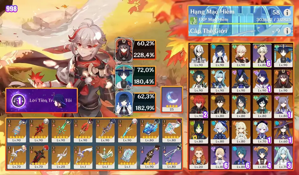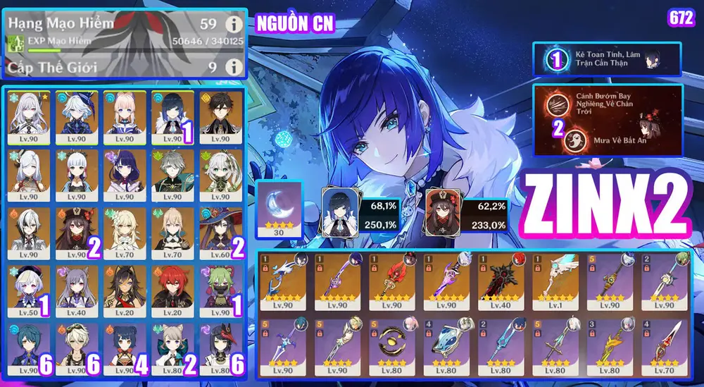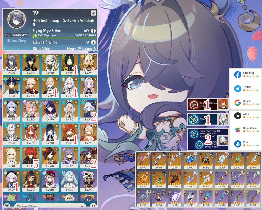 acc vip xiao trấn yelan trấn hutao trấn ayaka trấn skin clo trấn