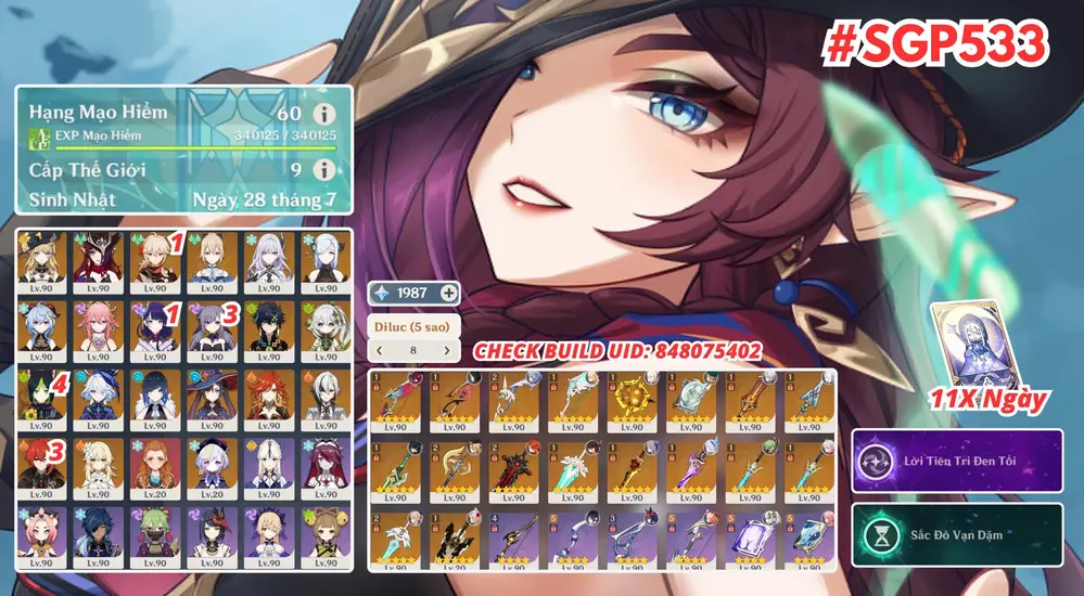 AC VIP cực chất hệ sưu tầm chỉ thiếu 5 char nv là full char cho ae , có đầy đủ hết team meta hiện tại , map còn 5.8 , 6.0