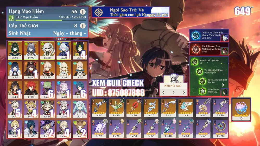 NAHIDA C6 TRẤN + NEFER + LAUMA + NGUỒN CN VIP