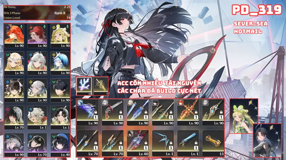 [ PD_319 CỰC PHẨM WAIFU FULL WAIFU TOP ĐẦU META ] CHISA TRẤN + CATHER TRẤN + AGUSTA TRẤN + SHOE TRẤN + JINHSI TRẤN + CARLO TRẤN + ZHEZHI + .... + ACC BUILD CỰC MẠNH VÀ CÒN CỰC NHIỀU TÀI NGUYÊN KHÁC !!!!!!!