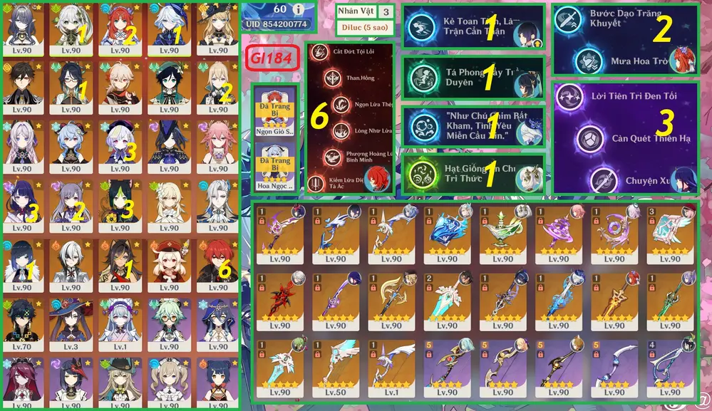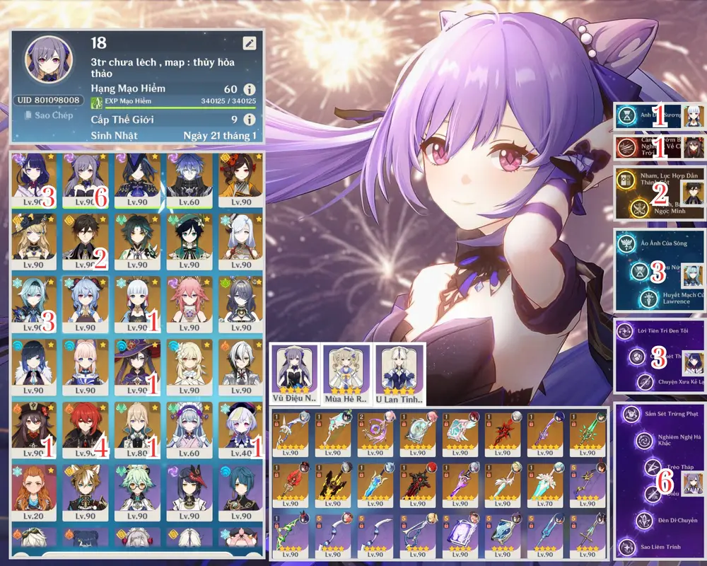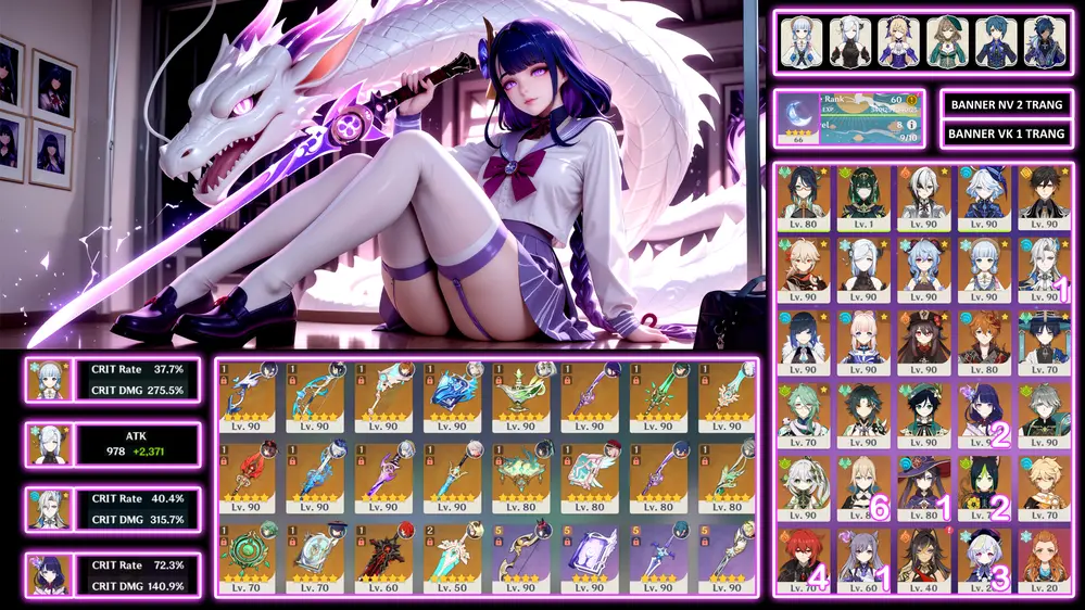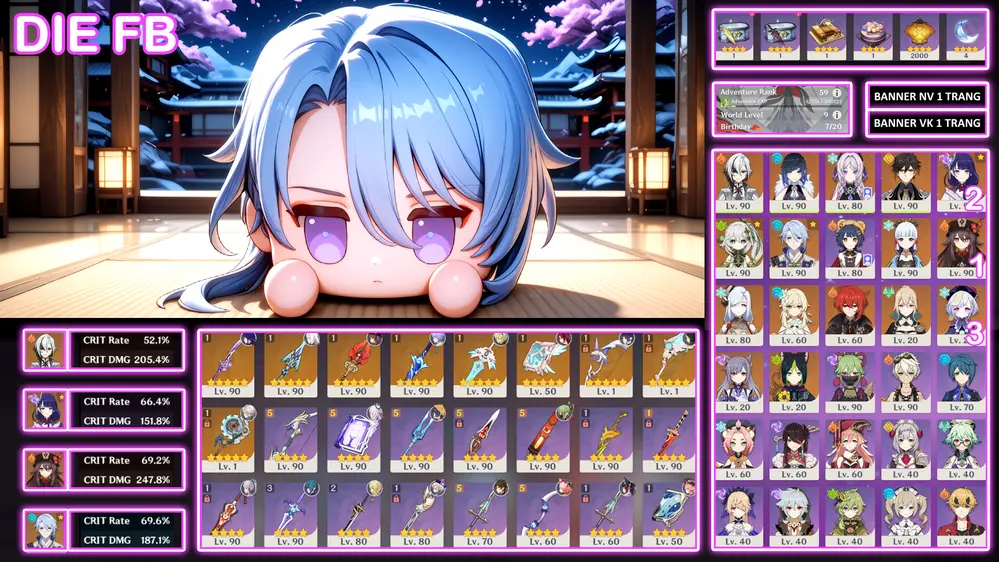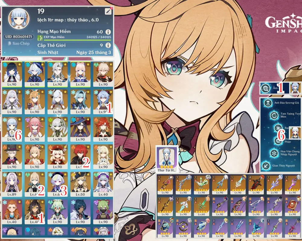 AC VIP keqing c6 skin cùng đồng bọn đã buid siêu ổn áp cho ae có luôn 2 char mới lauma + flins