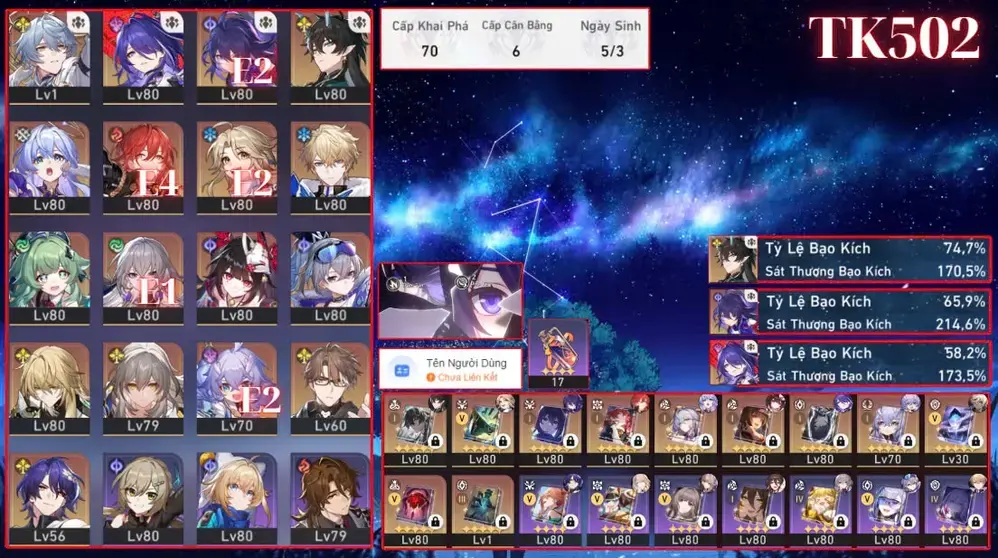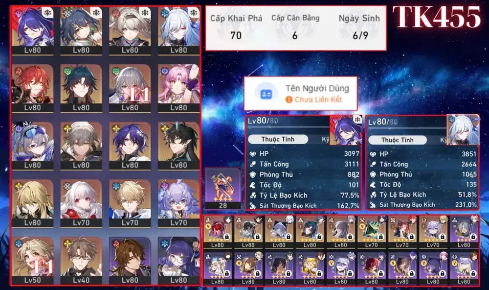 [17 CHAR 5SAO 6 TRẤN] DANGHEN TRẤN BLADE TRẤN JINGLIU TRẤN HIMEKO TRẤN BAILU TRẤN BRONYA E1 TRẤN ACHERON YUNLI FIREFLY FUXUAN SÓI BẠC RAITIO LUOCHA CLARA GEPARD YANGQING E1 WELT