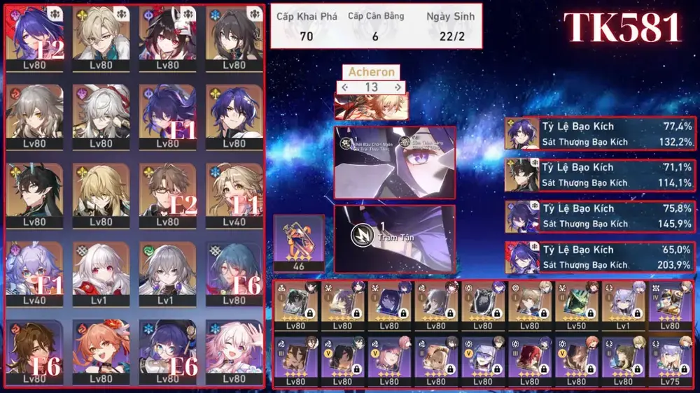 QUÁ NGON ACHERON E2 TRẤN RAITIO TRẤN SEELE E1 TRẤN DANGHENG TRẤN AVENTURINE HANABI RUANMIE JINGYUAN LUOCHA