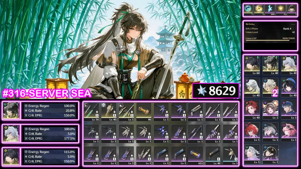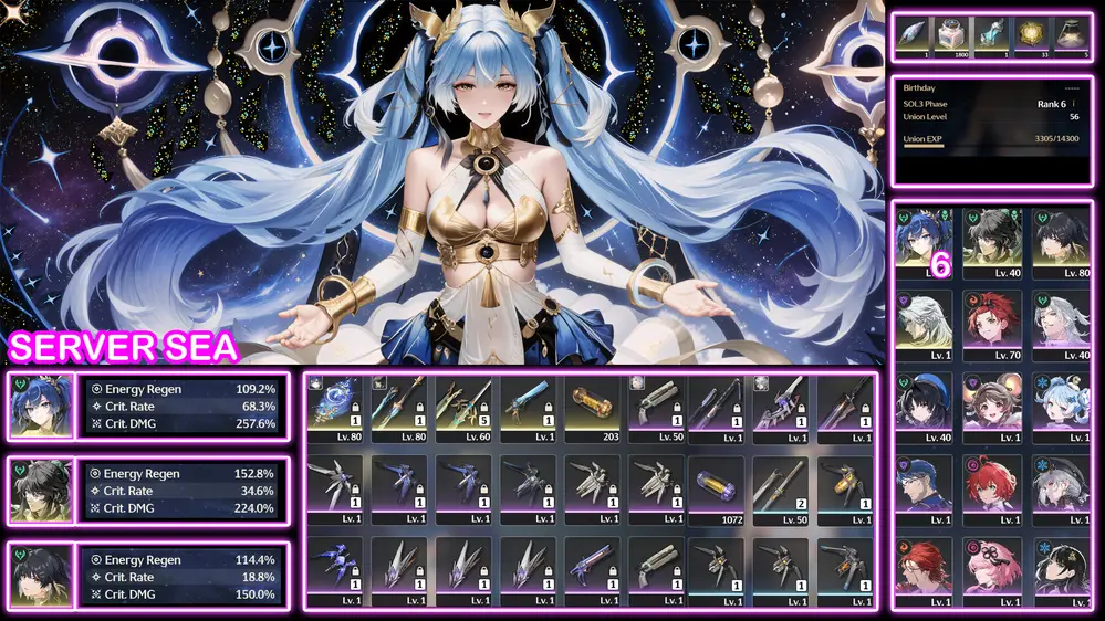 [Siêu Phẩm META S ] TH-565 Zani (Trấn) + Phoebe (Trấn) + Jianxin (Trấn) + Calcharo + Roll + Zin map từ 2.3 đến giờ