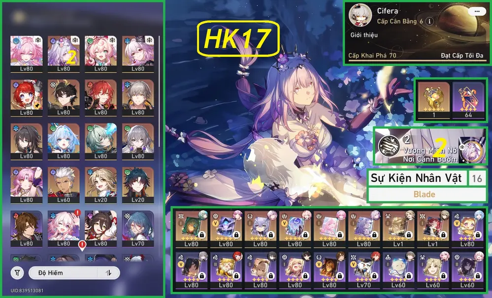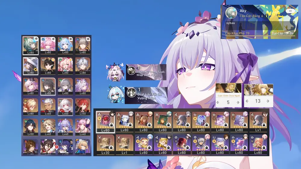 Castorice E1S1, Cerydra E1, Phainon Trấn, Axana Trấn, Mydei Trấn, Evernight Trấn + Dahlia. Acc Sắp Nổ Banner Nhân Vật 13 Trang, Banner Vũ Khí Lệch 5 Trang, Acc Nhiều Char Trong Meta