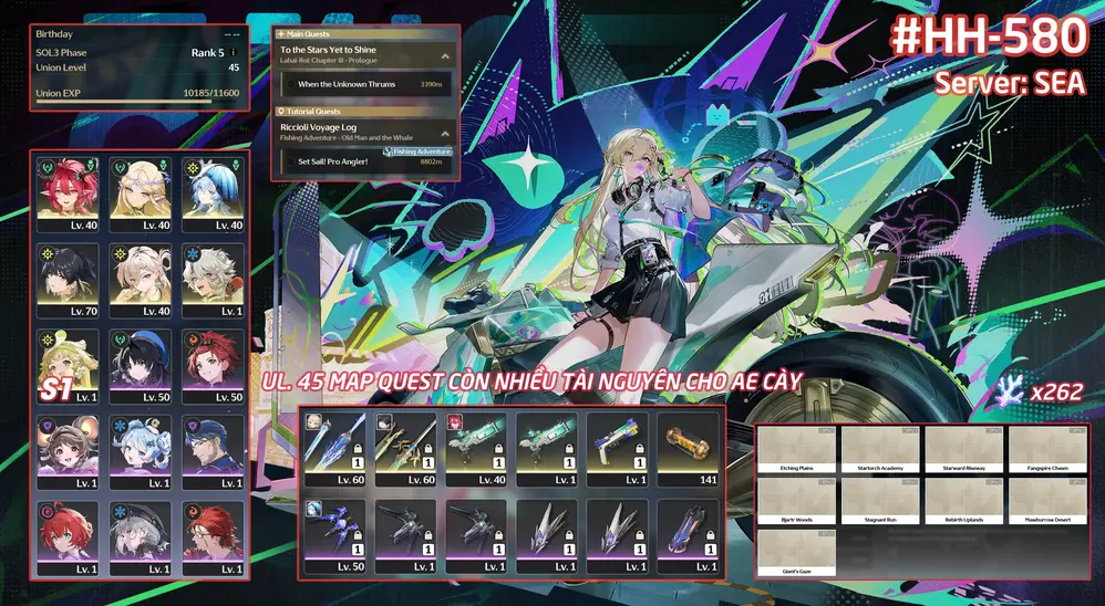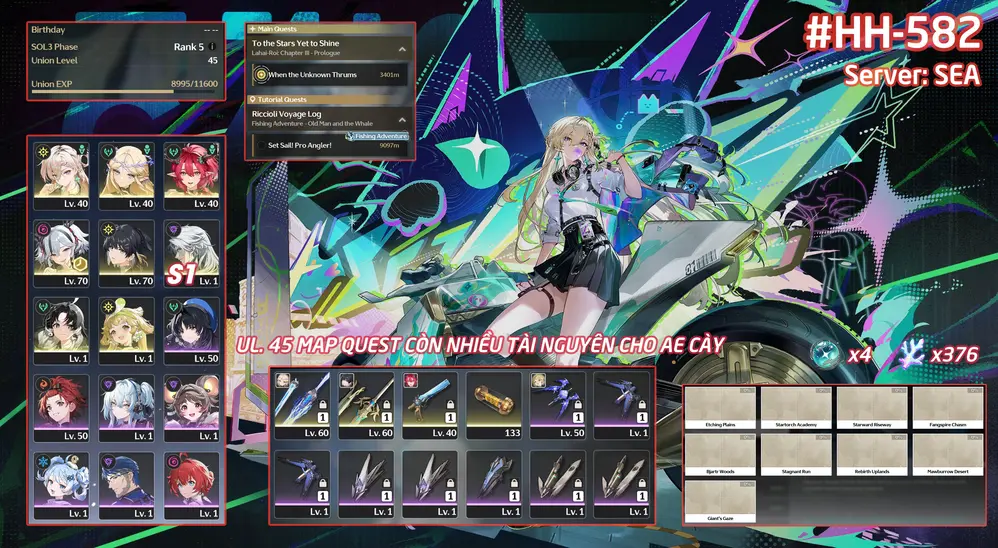 [#HH-581 SEA] LYNAE + CARTETHIYA (S2) + CIACCONA + VERINA (S2) + CALCHERO + LINGYANG + JIANXIN + Bảo hiểm nhân vật