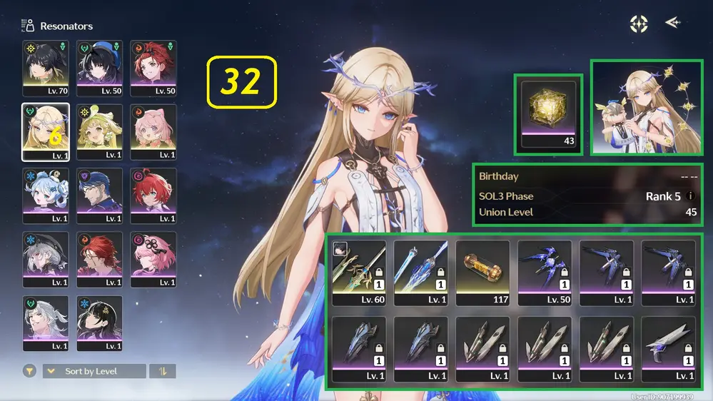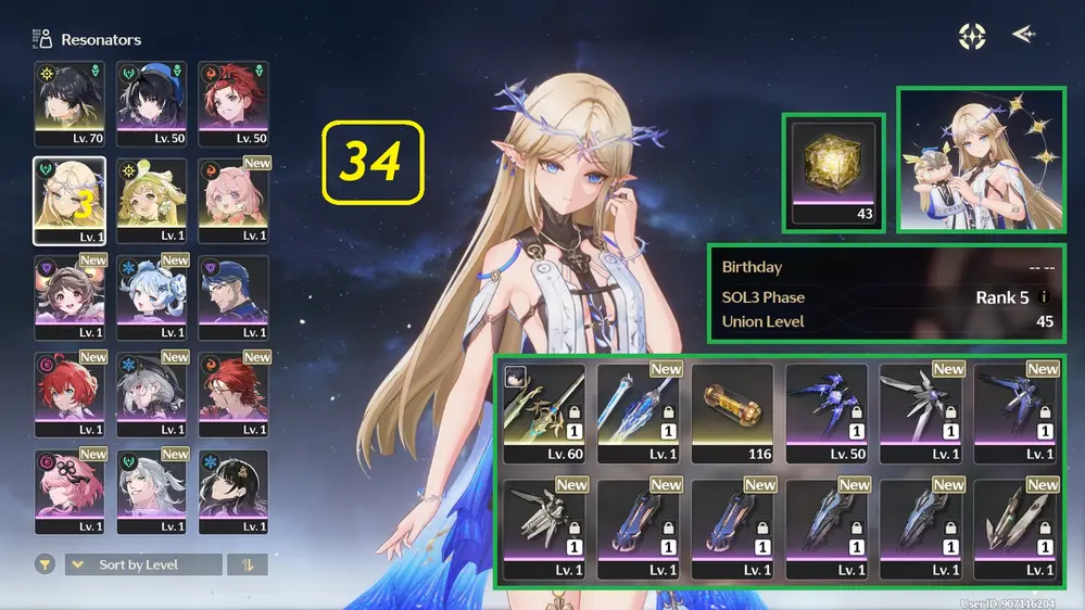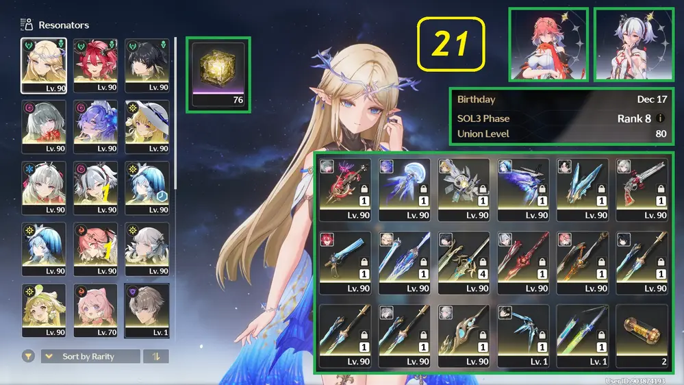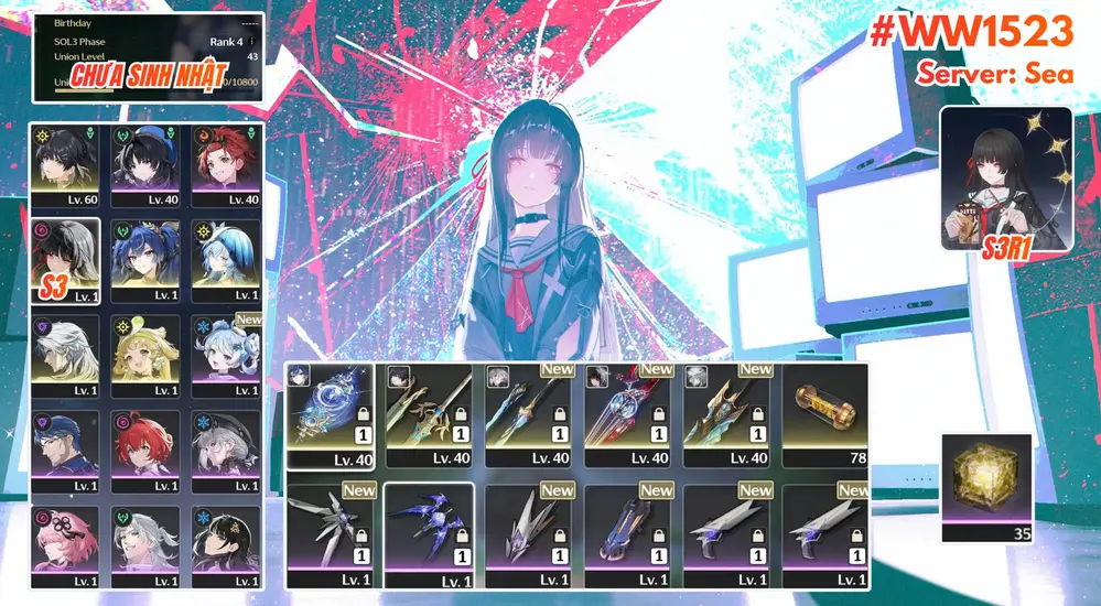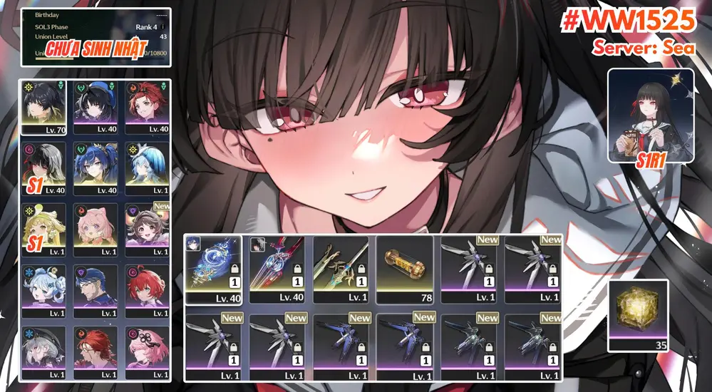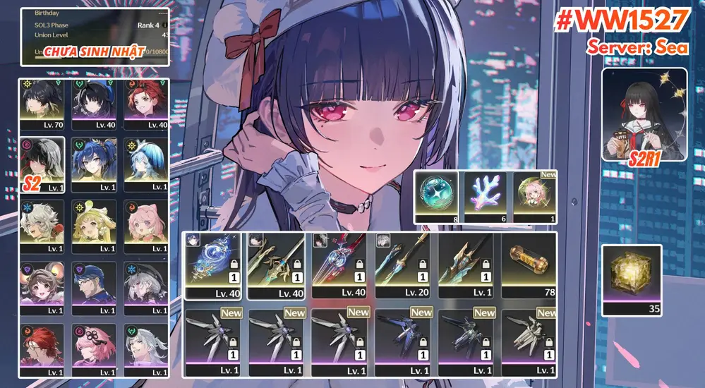 [ SIÊU PHẨM HẠT DẺ NHIỀU CHAR TRẤN CÒN TÀI NGUYÊN ] WW1521 Iuno R2A1 + Cartethyia R2A1 + Changli R1A1 + PhoeBe R0A1 + Canta R0A1 + Jinhsi R0A1 + Camellya + Shoe + Yao + Lynae ( Chưa Set Sinh nhật + còn nhiều tài nguyên )