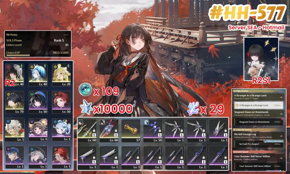 [#HH-577 SEA VIP HOTMAIL] CHISA R2 TRẤN + SHOREKEEPER + 10000 ASTRITE + 109 ROLL XANH + 29 SAN HÔ + CÒN QUEST TÀI NGUYÊN CHO ANH EM TRẢI NGHIỆM