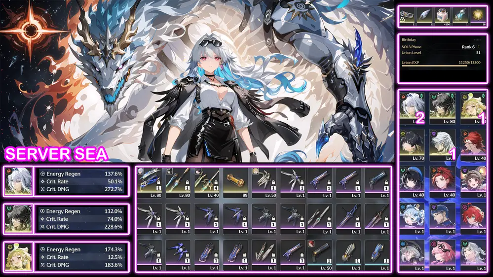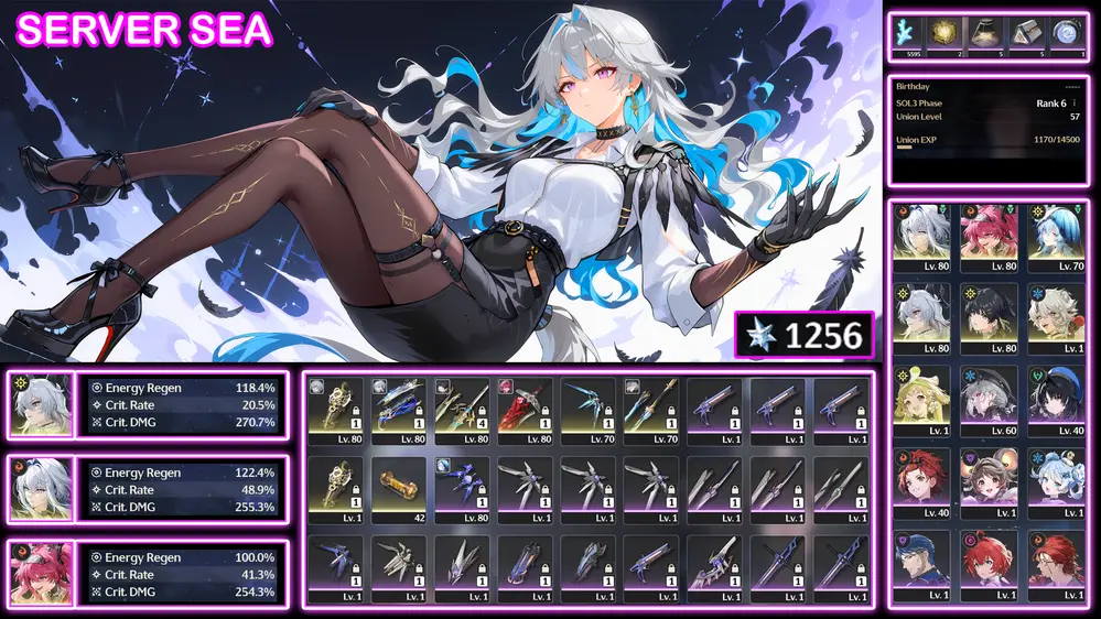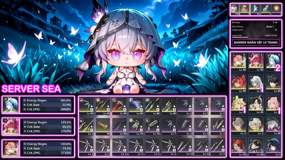 [Siêu Phẩm META S ] TH-561 Zani (Trấn) + Phoebe (Trấn) + Verina(Trấn) + Lingyang + Calcharo + Roll + Zin map từ 2.3 đến giờ