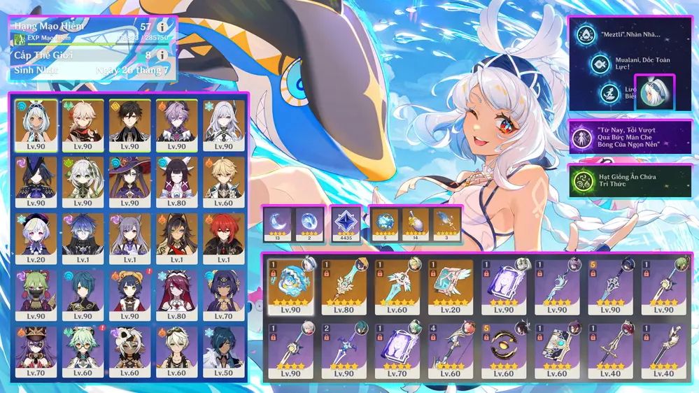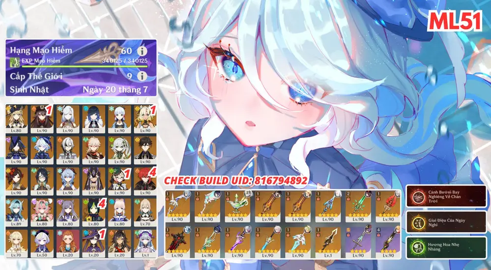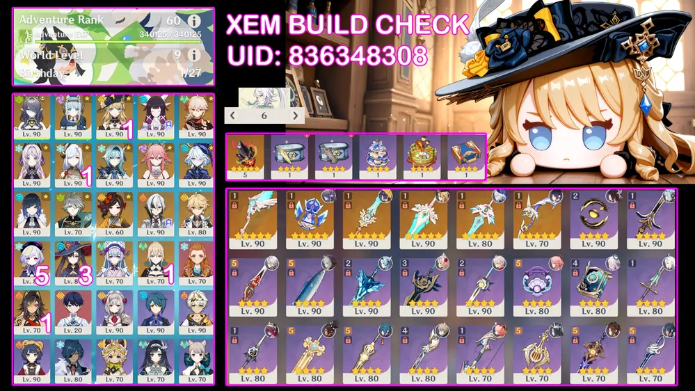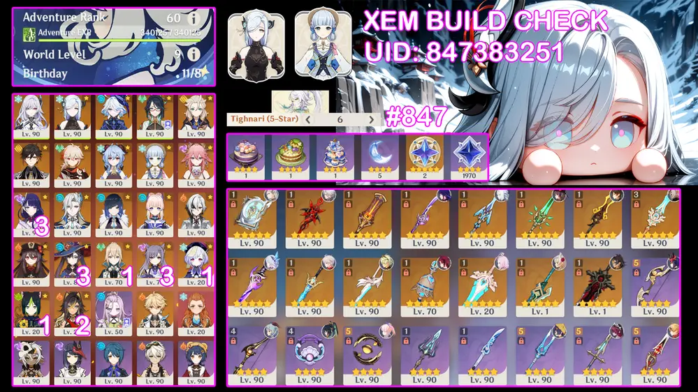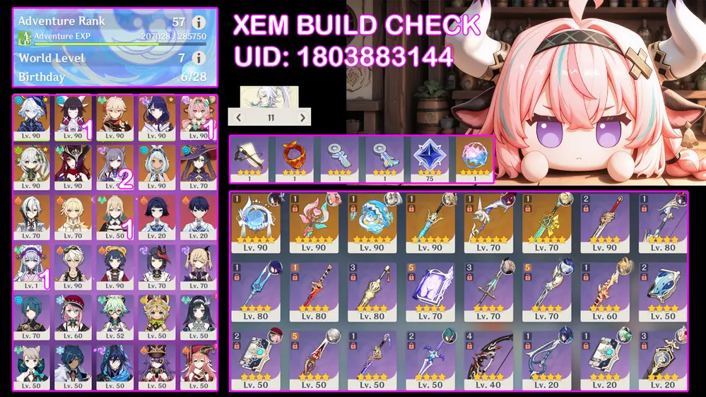 Ei C3r1 + Skirk + Neu + Arlec trấn + Skin shenhe và tiểu thư ayaka kèm thèo nhiều char mạnh trong meta. Banner nhân vật 6 trang có bảo hiểm (847)