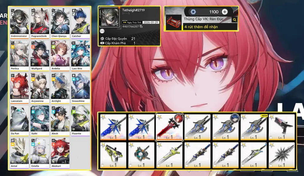 Leavatain trấn + Last rite + Pog + Ardelia + 2 weap 6 sao