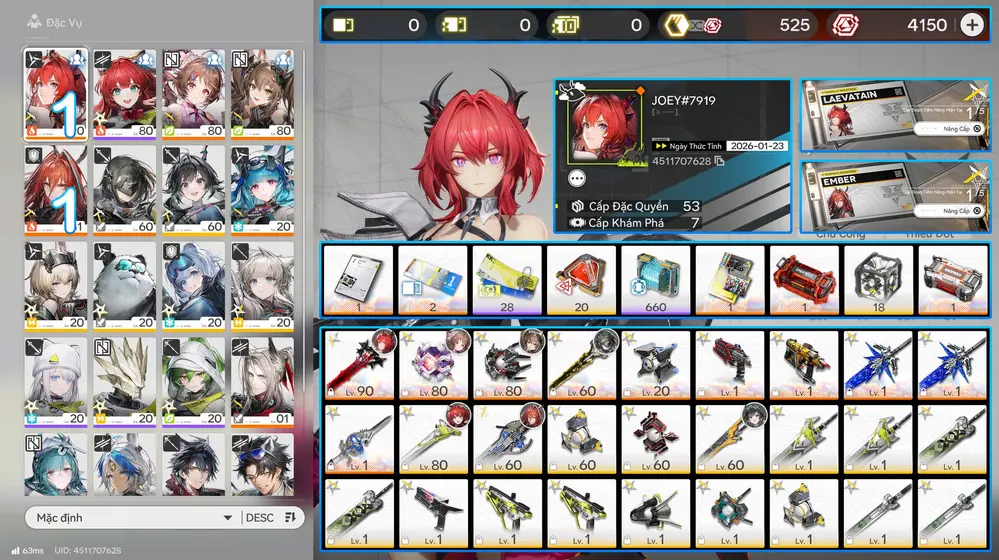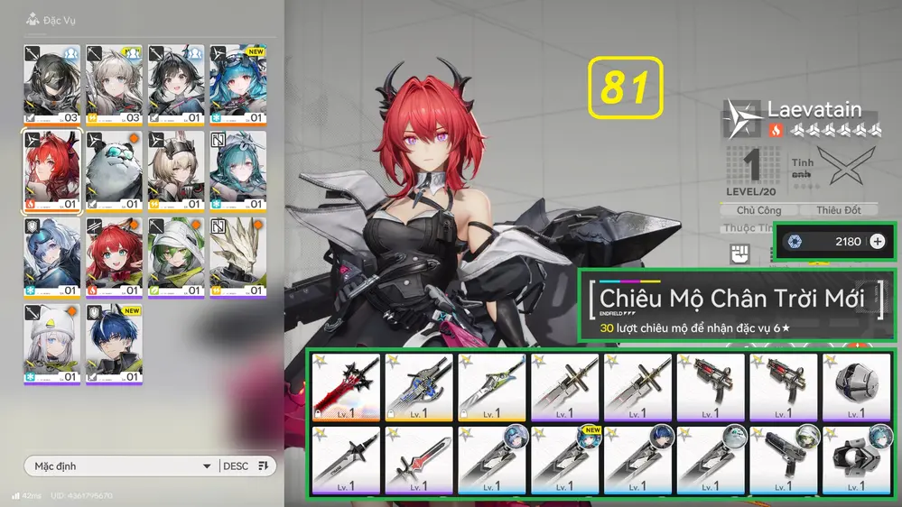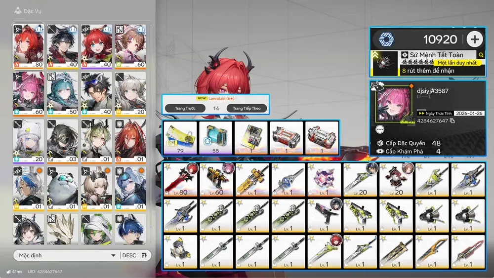 Laevatain Trấn + Last Rite Ar2 Full tài nguyên, còn banner TT, có nút nhảy - Team đẹp giá rẻ phù hợp trải nghiệm game từ đầu