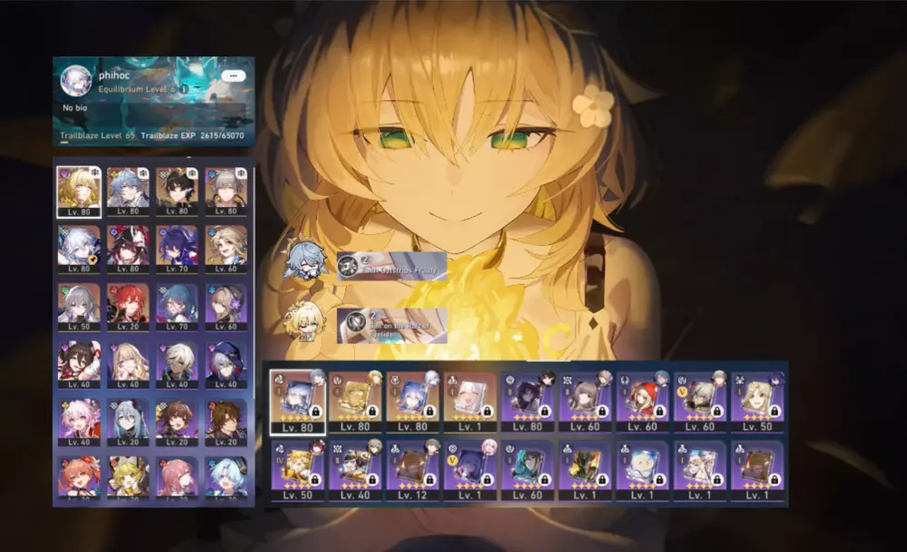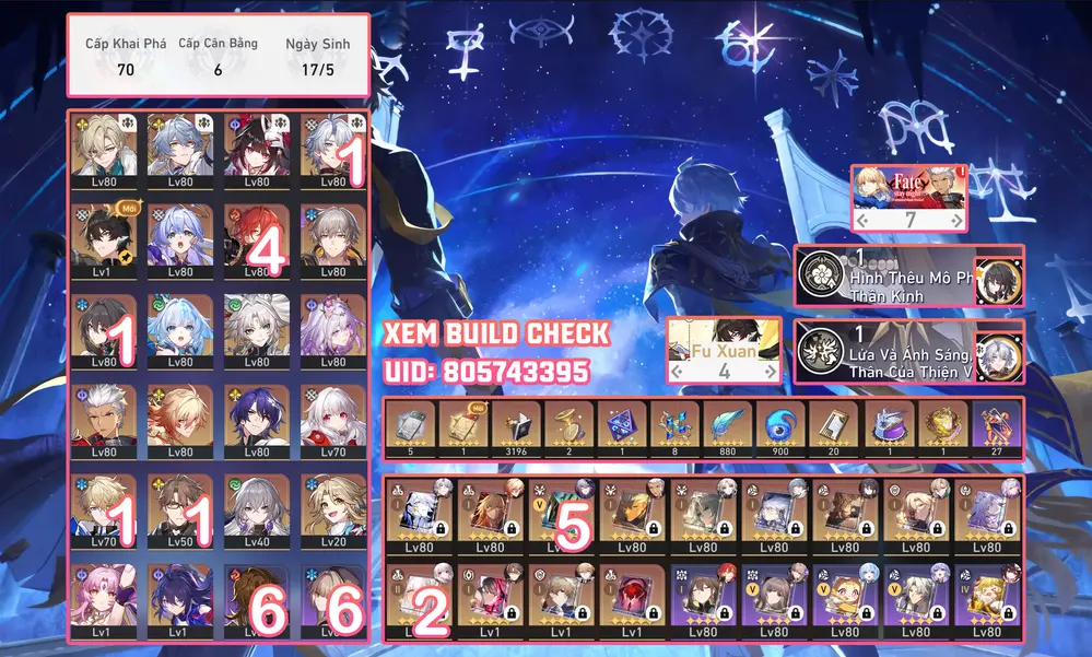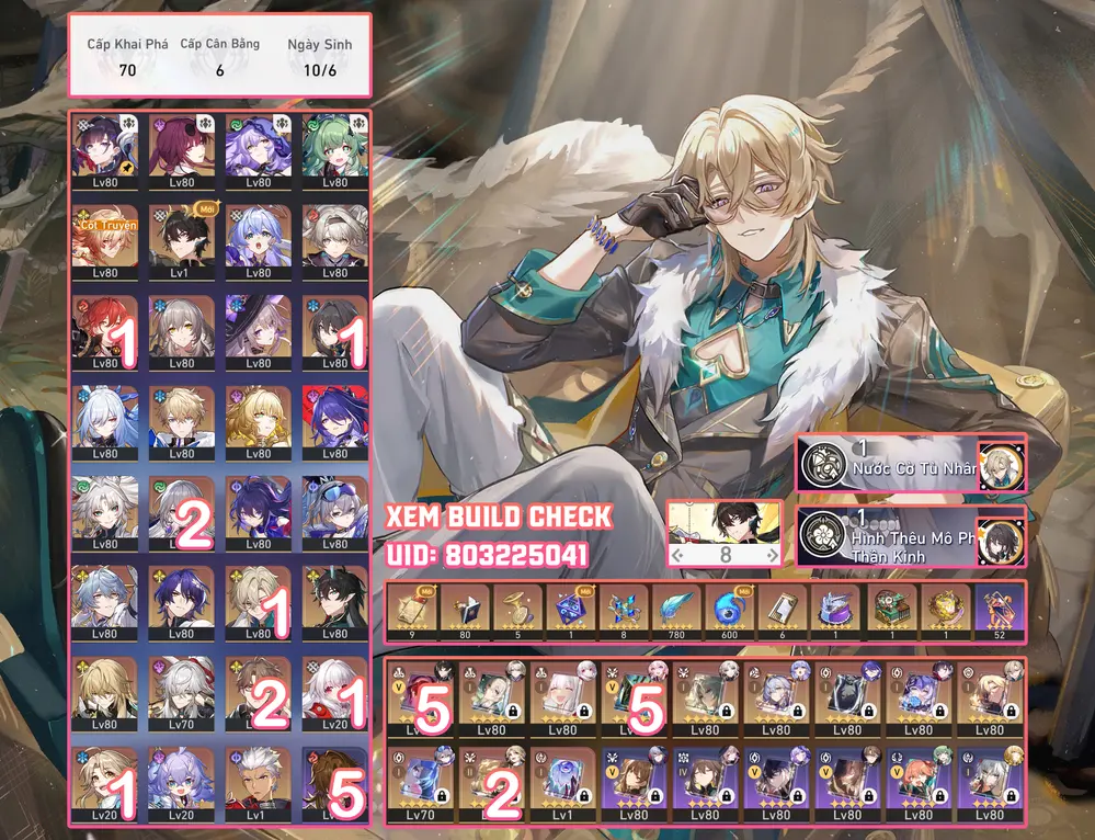 Saber Trấn, Phainon Trấn, Acher Trấn + Dahlia, Tribble, Sunday. Acc Dư 45 Vé