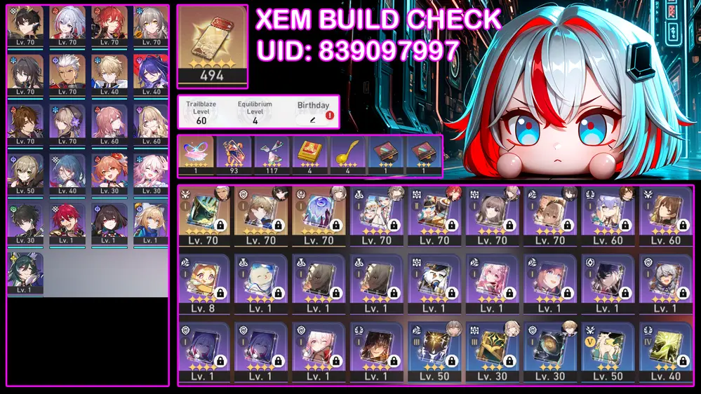 Aglaea E2S1, Sunday E2S1 + Yao Guang Trấn. Acc Team Đẹp Còn Nhiều Map