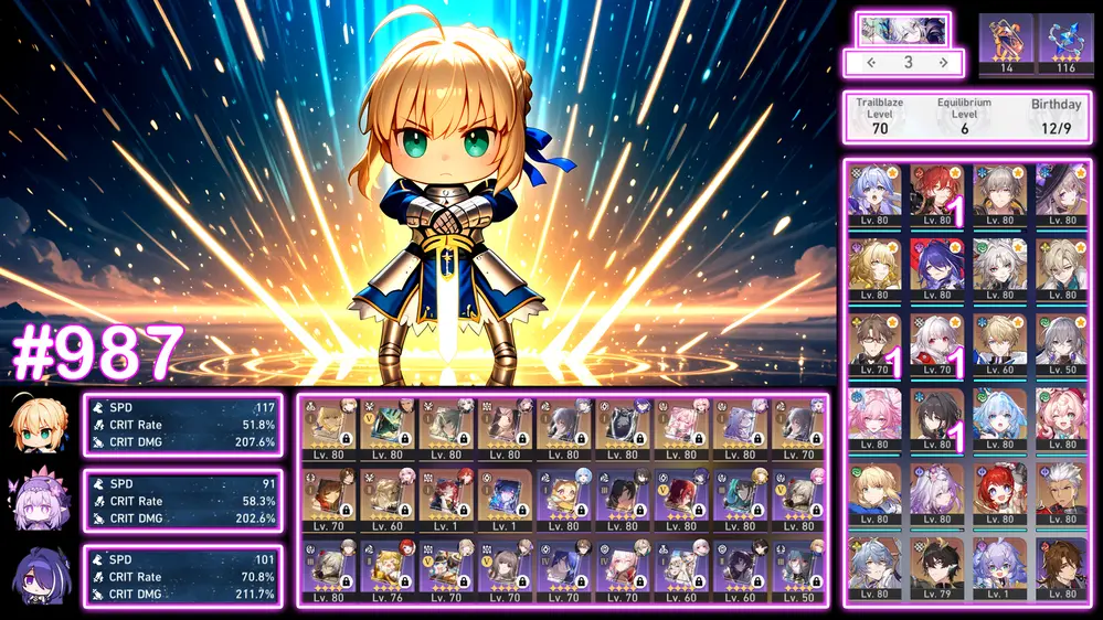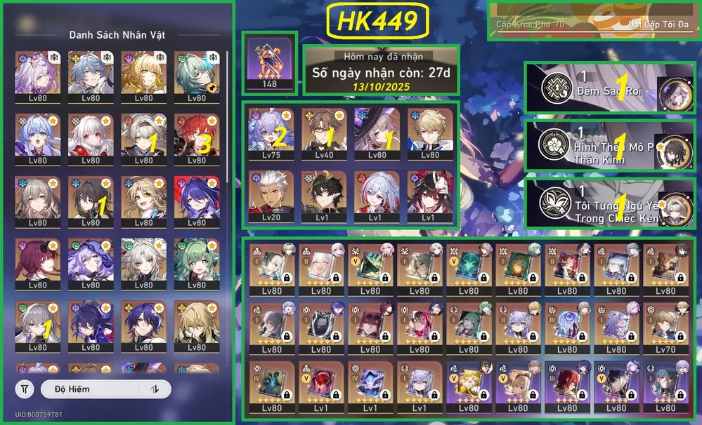 [Acc 2 game] Acc ngon team đẹp - Full Cas - Full Phainon dát kim cương - Rất nhiều char trấn