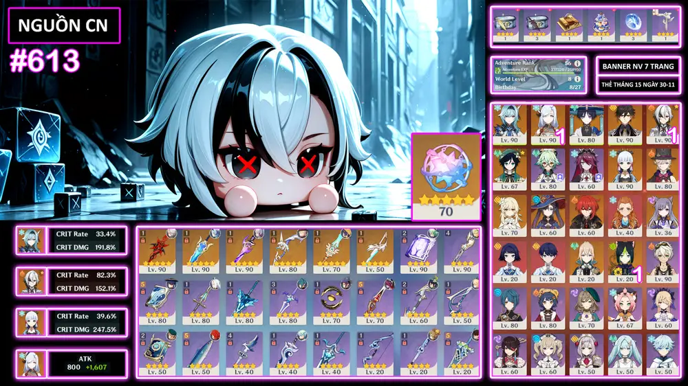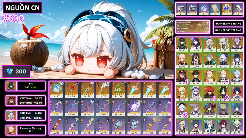 AC VIP ayaka c6 , diluc c6 qiqi c6 cùng đồng bọn cực nhiều char cho ae hệ sưu tầm , kẹp rất nhiều cung mệnh ngon , có kaeya c6 4 sao cực hiếm