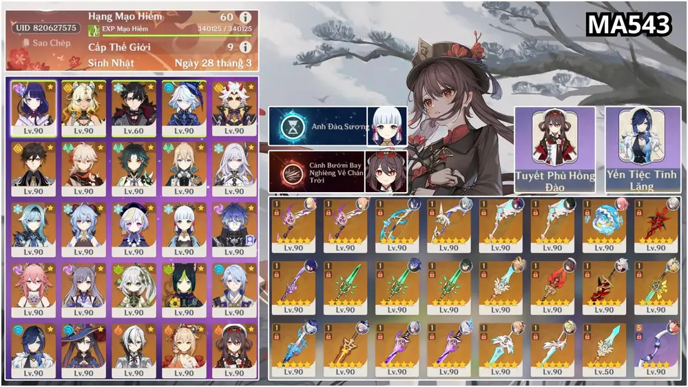 Siêu phẩm SKIN Hutao Yelan nhiều char và trấn