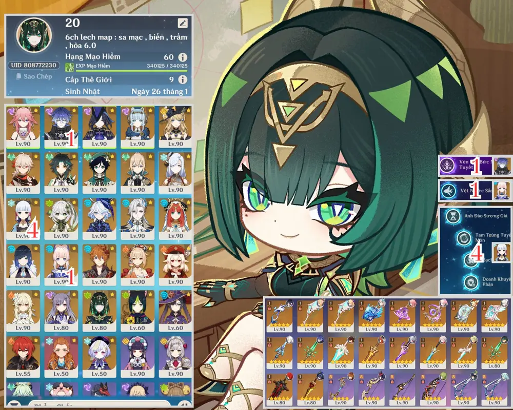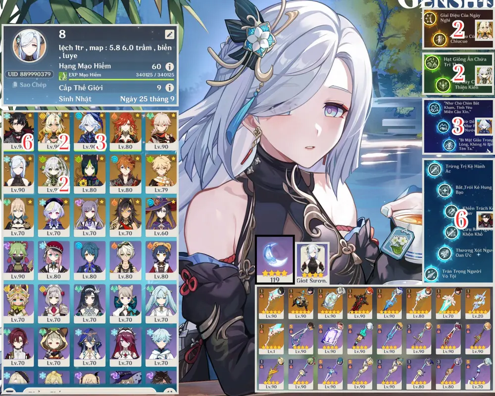 AC VIP siêu hiém wiro c6 cùng đồng bọn kèm cung mệnh cực ngon sẵn skin shenhe , map còn cực nhiều cho ae